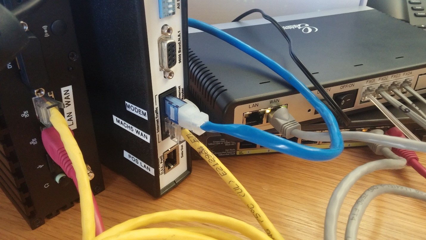 2) The Mach5’s WAN port is connected to the LAN/Network port on the Vertex Caller ID Box.